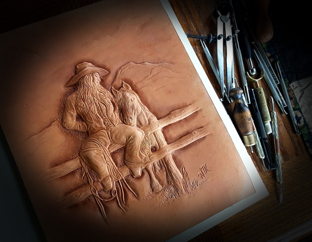 Nicole blends traditional leatherworking techniques with innovative methods rarely seen in the industry. Through dyeing, antiquing, and resist techniques, she achieves intricate details, depth, and perspective in her work. Nicole's ultimate objective is to honor the Western culture of our ancestors and imbue her creations with that enduring spirit.